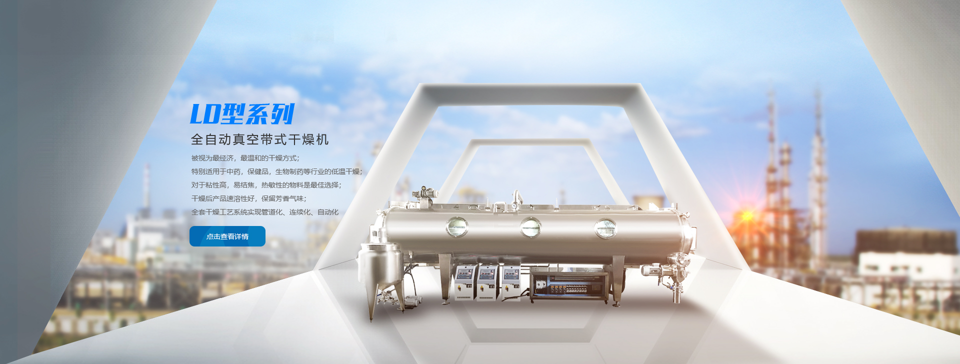 主要研發(fā)和生產(chǎn)具有自主知識(shí)產(chǎn)權(quán)的中藥提取濃縮成套設(shè)備、中藥浸膏低溫真空帶式連續(xù)干燥機(jī)等產(chǎn)品